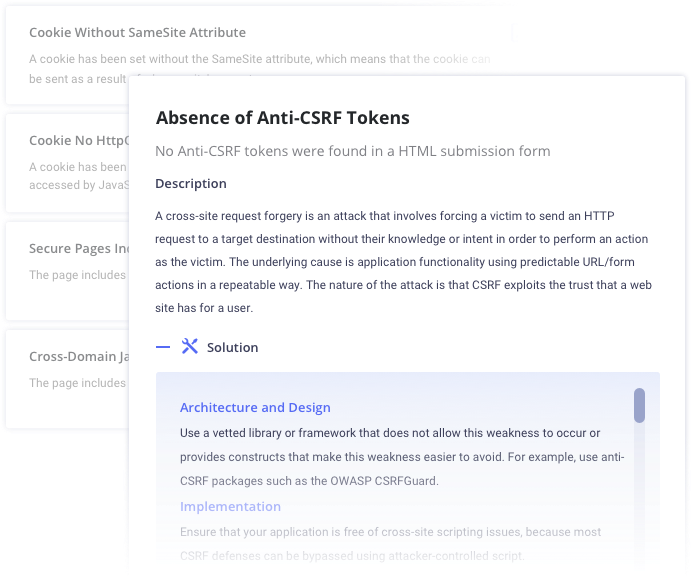 Get actionable recommendations in each section of the scan report that show you how to fix the issue and protect your website.