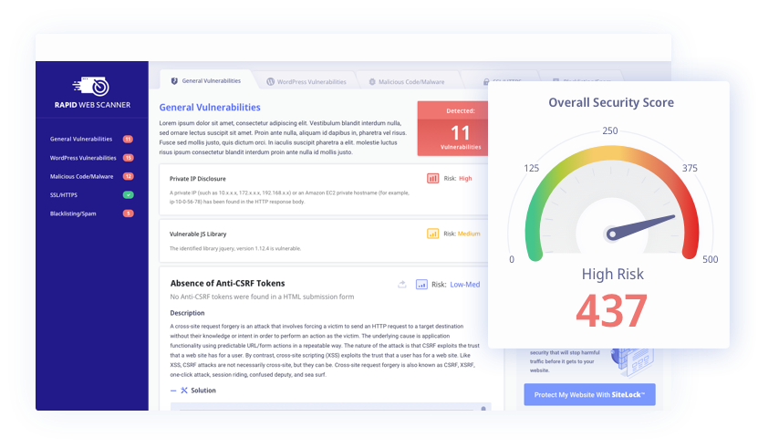All website vulnerabilities aren’t created equal. Some are unlikely to cause any real-world problems while others could lead to unmitigated disaster. Our scanner identifies and prioritizes any security issues found—so you know which ones are most likely to cause problems and can fix those issues first.